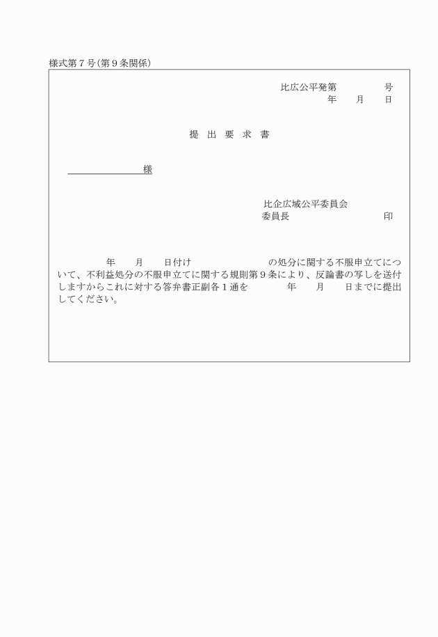 規則第9条の規定による提出要求書(反論書) | |